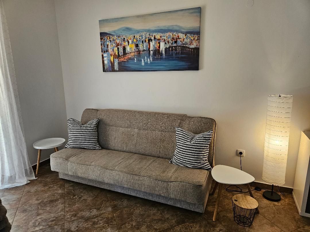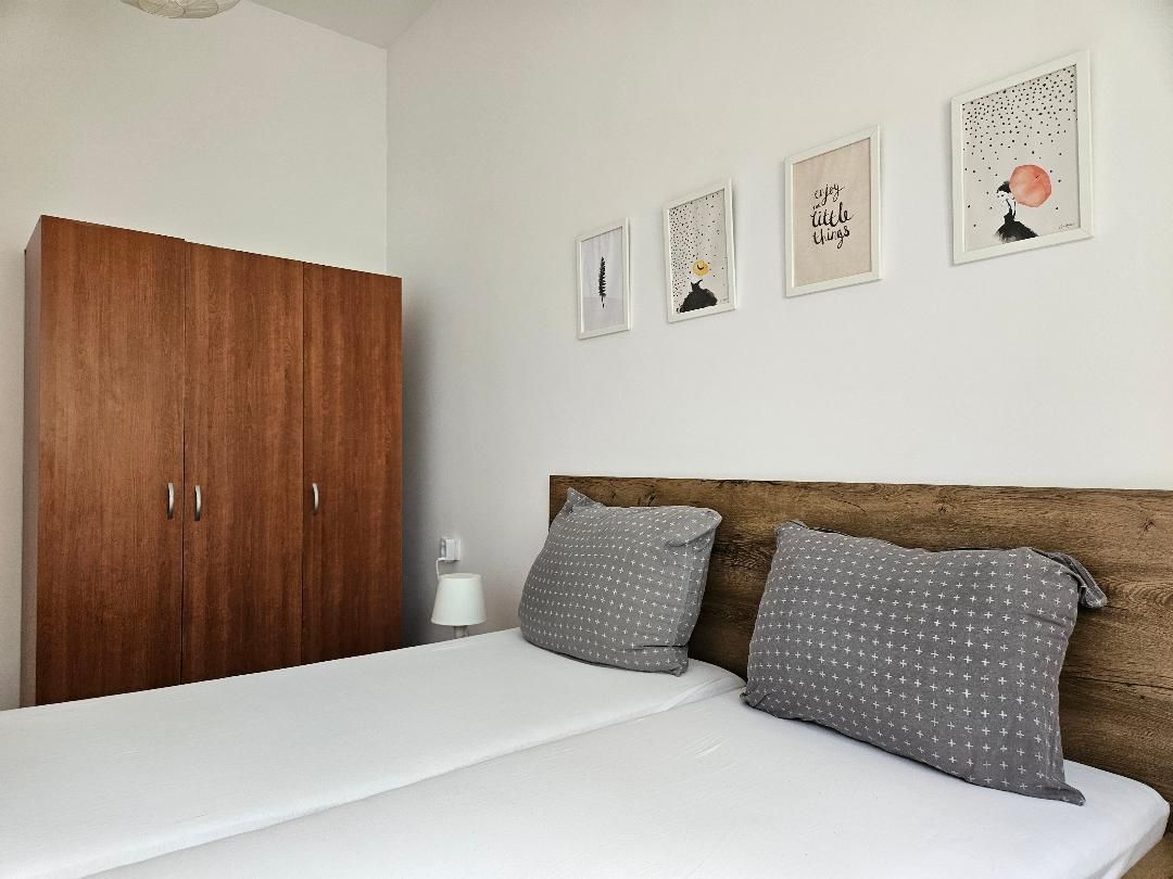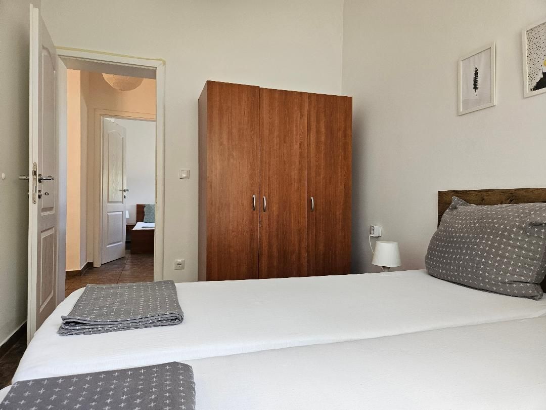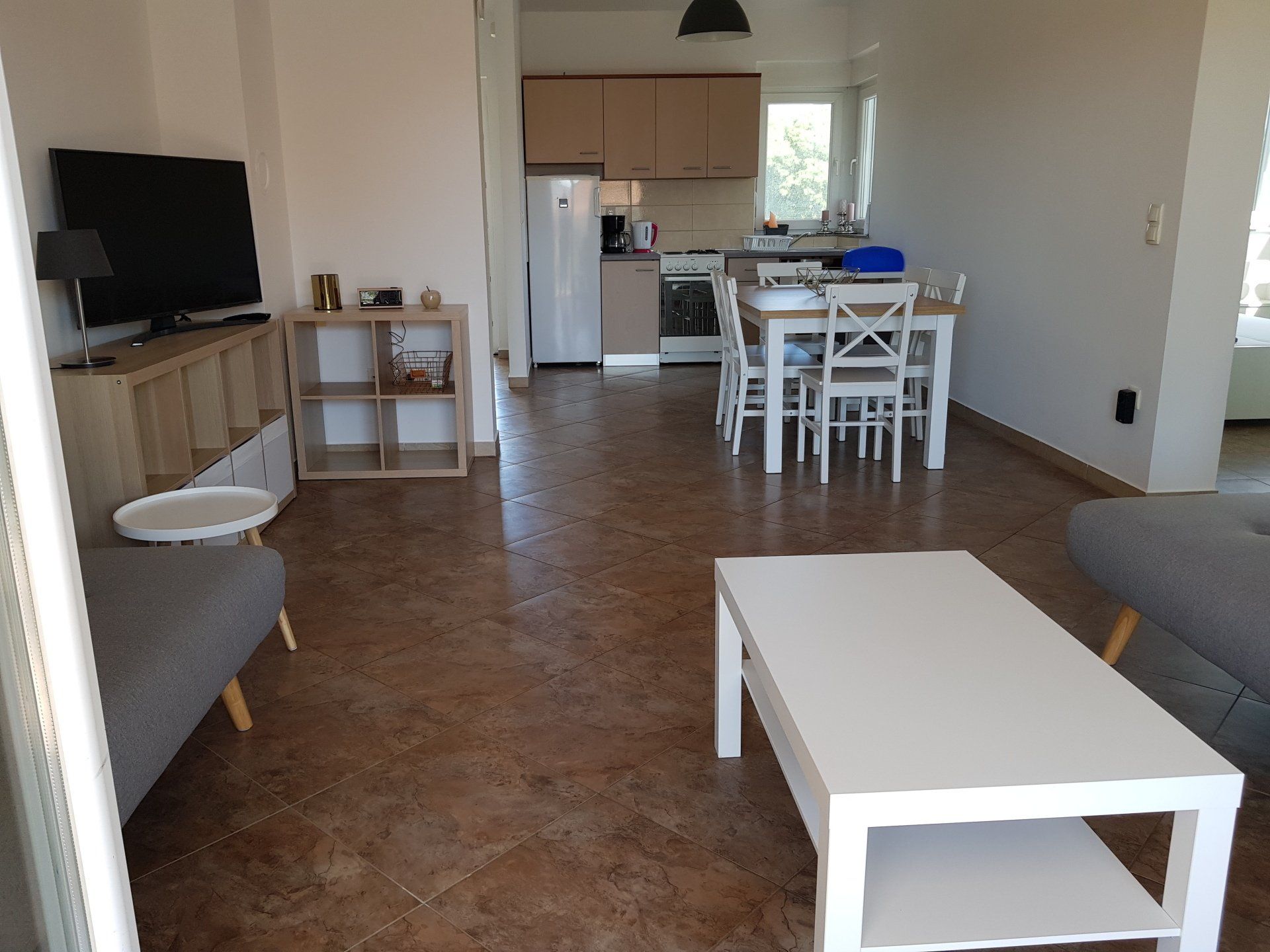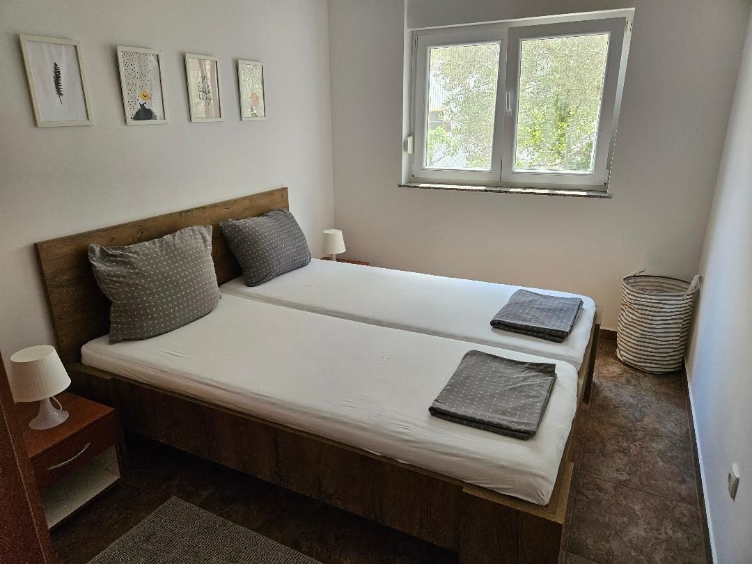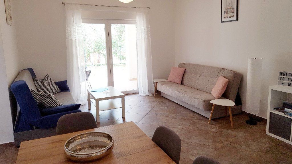 1. Obergeschoss und ist für max. 4+1 Personen ausgelegt. In den Schlafzimmern befinden sich jeweils ein Doppelbett und im Wohnzimmer ist ein Schlafsofa vorhanden. Das Bad bietet eine Dusche und zur Verfügung gestellte Handtücher. Die Handtücher können auf Wunsch wöchentlich gewechselt werden. Das klimatisierte Apartment hat einen Wohnbereich mit einer Sitzecke und einem Flachbild-Satelliten-TV (inkl. deutscher und kroatischer Fernsehsender), DAB-Radio sowie einer komplett ausgestatteten Küche mit Essbereich. Der Balkon lädt zum Verweilen auf den Gartenmöbeln ein und bietet zudem einen Ausblick auf das wundervolle kroatische Meer. Der im Garten befindliche, gemauerte Außengrill darf gerne für Grillabende genutzt werden.