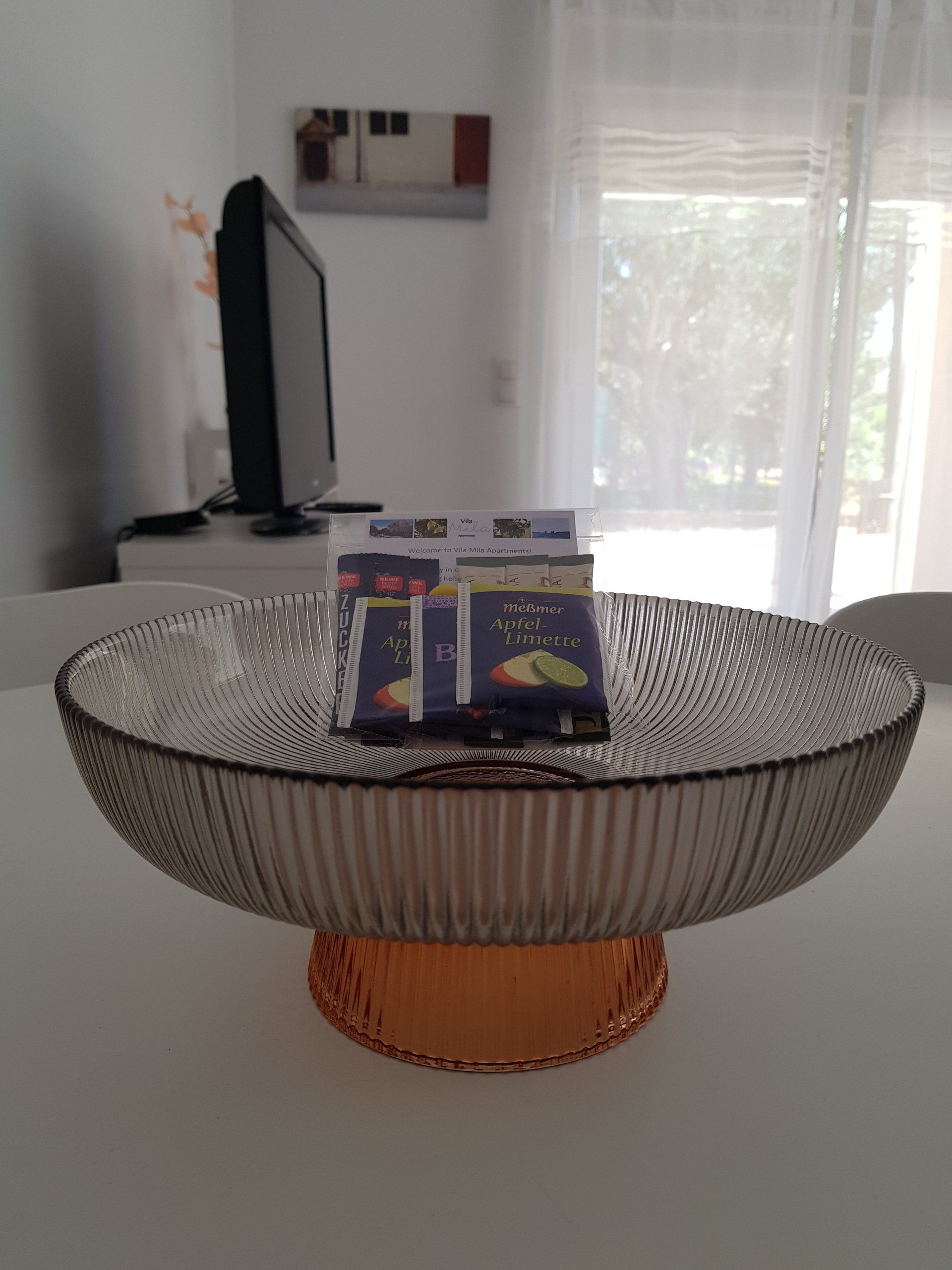 Die Handtücher können auf Wunsch wöchentlich gewechselt werden. Das klimatisierte Apartment hat einen Wohnbereich mit einer Sitzecke und einem Flachbild-Satelliten-TV (inkl. deutscher und kroatischer Fernsehsender), DAB-Radio sowie einer komplett ausgestatteten Küche mit Essecke und einem Kinderhochstuhl. Die Terrasse bietet eine herrlich entspannte Atmosphäre mit Gartenmöbeln. Zum Grillen lädt unser gemauerter Außengrill ein.
