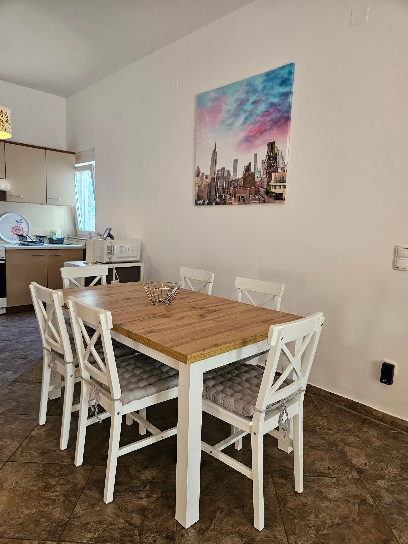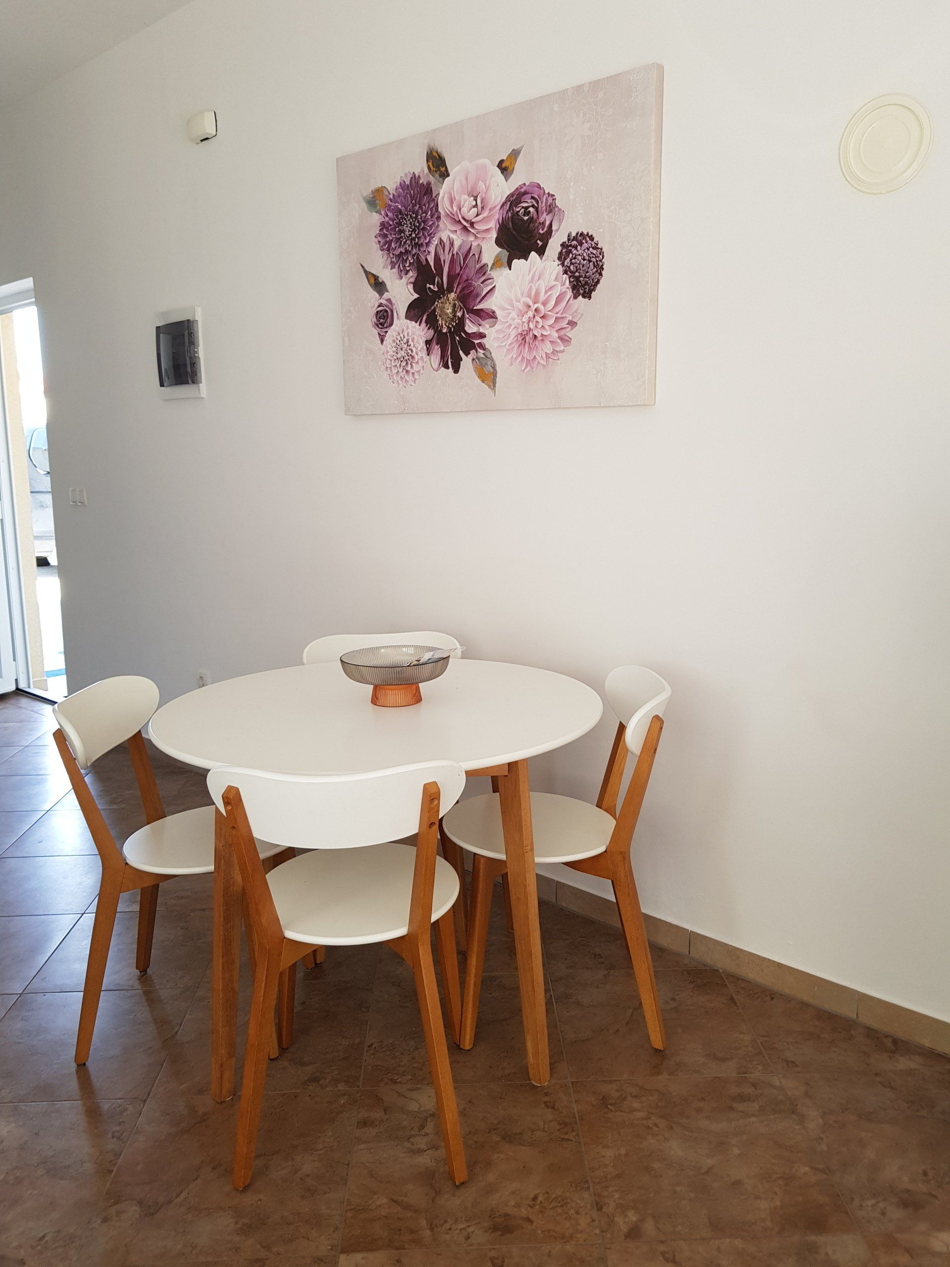 1. Obergeschoss und ist für max. 4+1 Personen ausgelegt. In den Schlafzimmern befinden sich jeweils ein Doppelbett und im Wohnzimmer ist ein Schlafsofa vorhanden. Das Bad bietet eine Dusche und zur Verfügung gestellte Handtücher. Die Handtücher können auf Wunsch wöchentlich gewechselt werden. Das klimatisierte Apartment hat einen Wohnbereich mit einer Sitzecke und einem Flachbild-Satelliten-TV (inkl. deutscher und kroatischer Fernsehsender), DAB-Radio sowie einer komplett ausgestatteten Küche mit Essbereich. Der Balkon lädt zum Verweilen auf den Gartenmöbeln ein und bietet zudem einen Ausblick auf das wundervolle kroatische Meer. Der im Garten befindliche, gemauerte Außengrill darf gerne für Grillabende genutzt werden.